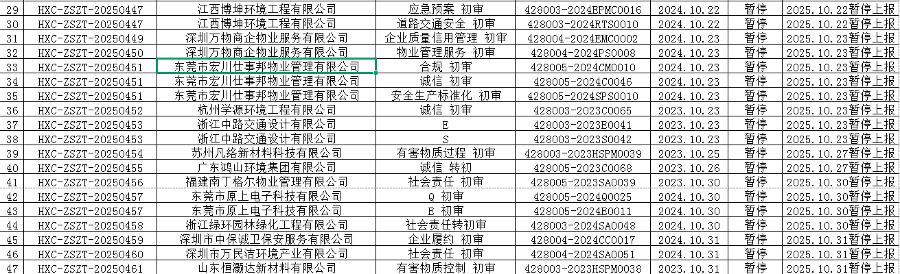 您的位置: 首頁 新聞中心 公司公告 暫停公告 2025年10月份認證證書暫停名單